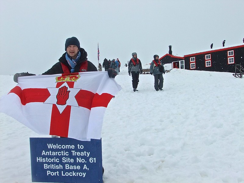 Flying my Northern Ireland flag at the British Base on Remembrance Day, Port Lockroy, Antarctica