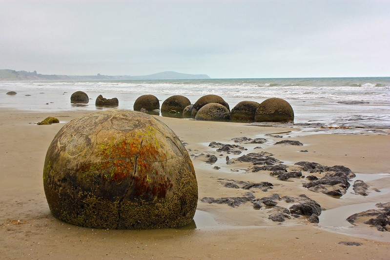 On the way back home to Dunedin, we stopped at the Moeraki Boulders, which looked like something left behind by a dodgeball fight between giants. I mean, really? How is this real? #soconfusedbyreality