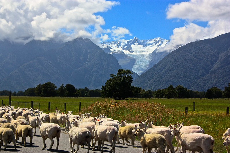 The hike itself was somewhere between Key Summit and Hooker Valley in terms of terrain and challenge and even though it was a bit cloudy, the view at the top was spectacular. Unfortunately eating underneath a glacier is cold, so we stuffed our sandwiches into our face and quickly descended back into the land of sun, wildflowers, and sheep. Corny? Yes. True? Absolutely.